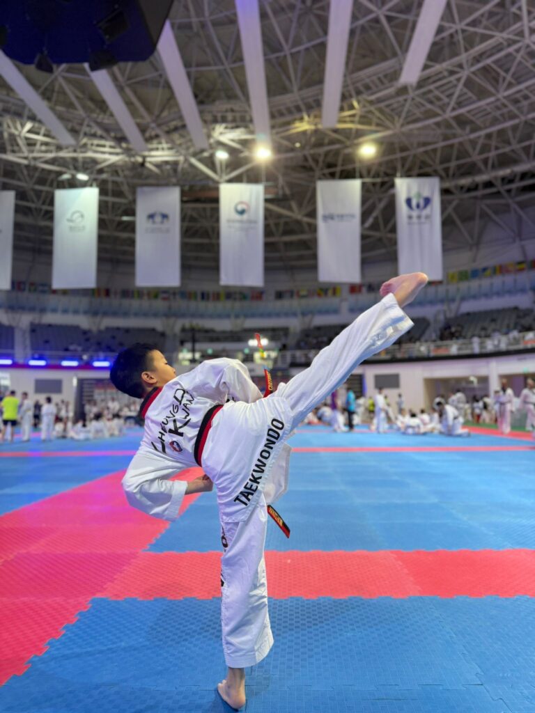 Day 3 - Today was the poomsae competition and the opening ceremony. We were at the arena to watch the demonstration team perform. There was a lot of talent in the opening ceremony such as breaking and freestyle poomsae. Then the poomsae competition started. My opponents were both from Korea so when I was waiting I got a little spooked. I was a little bit surprised when I won the gold medal. Overall, Cheung Do Kwan won 7 gold medals, 2 silver medals and 2 bronze medals.Today was a very amazing and fun day.